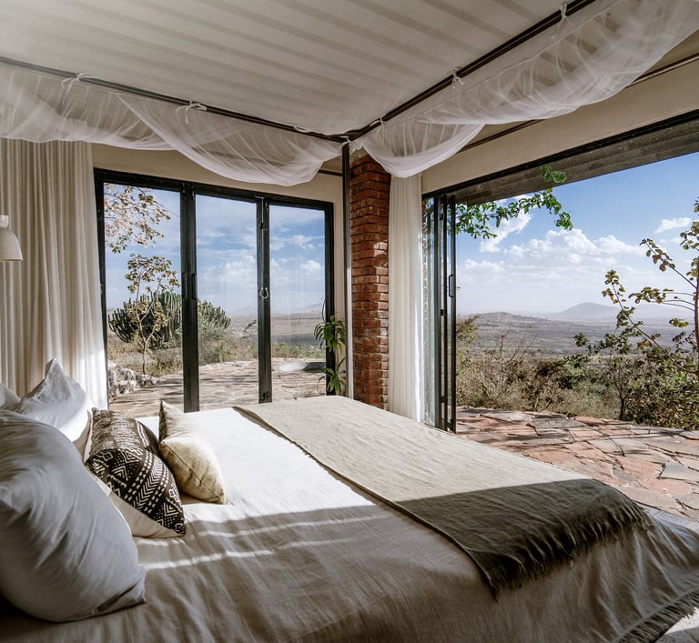 Tucked away in nature, our two off-grid micro-homes Aloe & Agave offer a seamless blend of design and stunning views over Maasai land to the Great Rift.